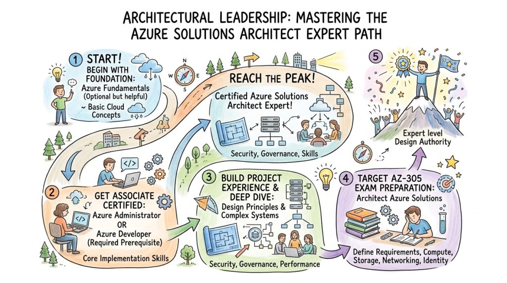 Becoming an expert architect involves a progressive journey that begins with foundational cloud knowledge. Candidates then advance to the associate level, gaining hands-on experience in administration or development. The Azure Solutions Architect Expert stands as the final, advanced milestone in this hierarchy.