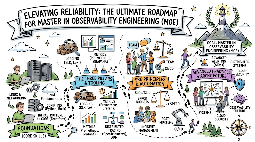 Modern software ecosystems need comprehensive, granular visibility into every transaction, not just basic uptime checks. For professionals who oversee intricate, dispersed cloud environments, the Master of Observability Engineering (MOE) offers a demanding technological framework. SREs, developers, and platform architects who wish to move from simple monitoring to sophisticated telemetry and tracing are the target audience for this tutorial. You may acquire the skills necessary to identify performance bottlenecks and provide high availability for international enterprise applications by following this course at DevOpsSchool. In the era of cloud-native engineering, we assist you in navigating the necessary certifications and competencies.