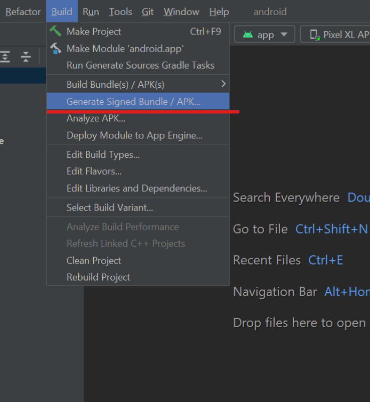 Once in Android Studio, navigate to the ‘Build’ menu in the navigation bar. From there, select ‘Generate signed bundle/apk.’ This will initiate the process of creating a signed release of your app.