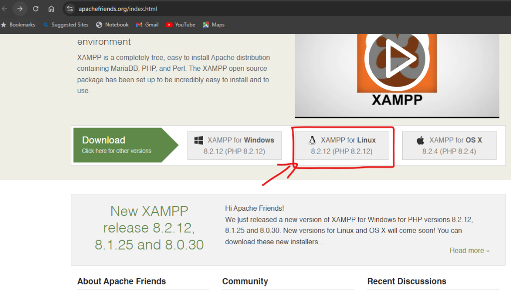- Visit the official XAMPP download page and download the Linux version of the installer.