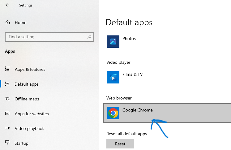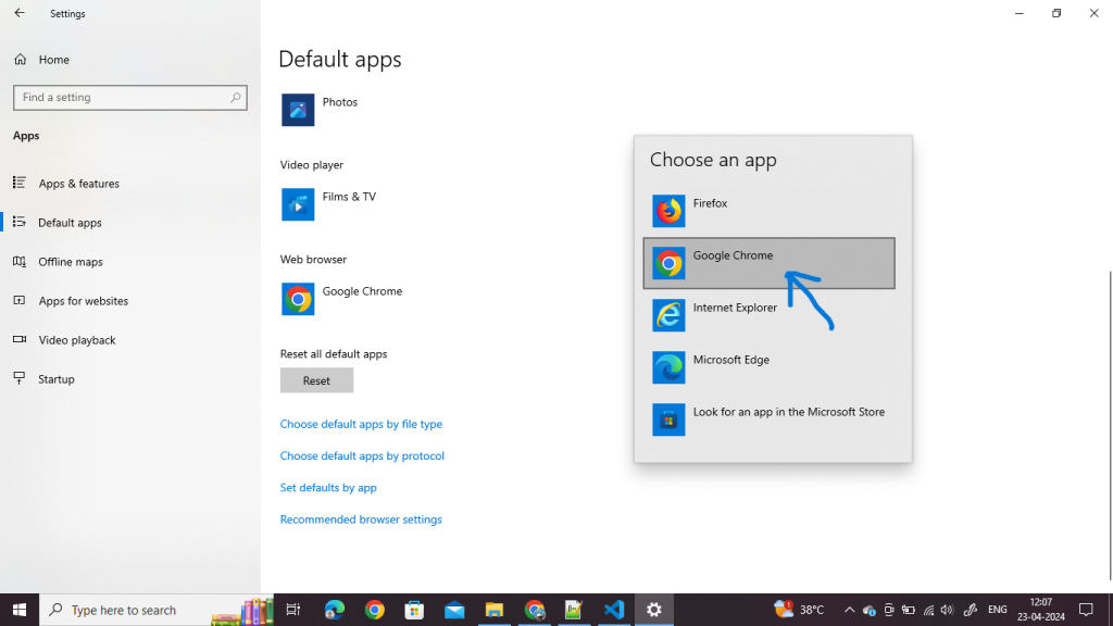 A list of installed web browsers will appear. Click on the one you want to set as your default browser