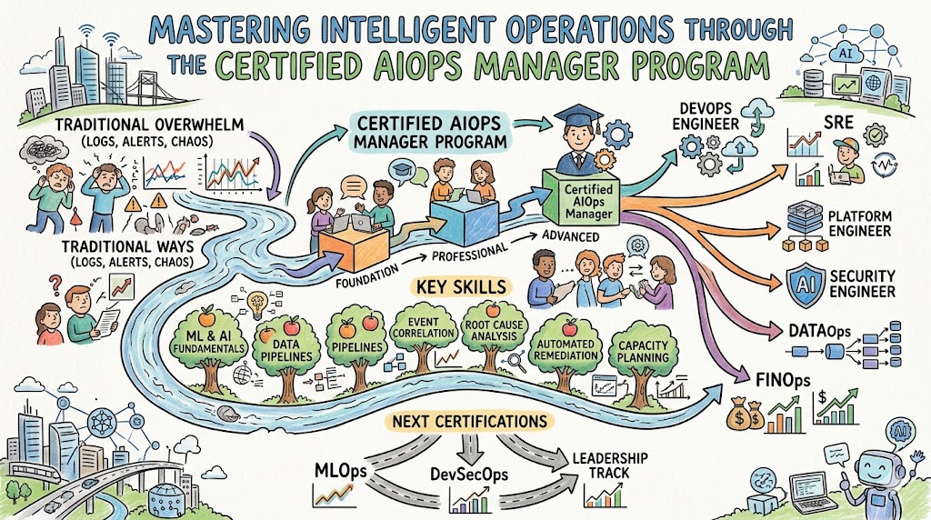 The Certified AIOps Manager credential serves as a bridge between high-level data science and practical infrastructure operations. It exists to standardize how organizations apply artificial intelligence to solve recurring performance bottlenecks and visibility gaps. Instead of focusing on abstract theories, the program emphasizes production-ready workflows that utilize intelligent automation. It aligns with modern enterprise practices by teaching engineers how to build self-healing systems that reduce manual toil and increase overall uptime.