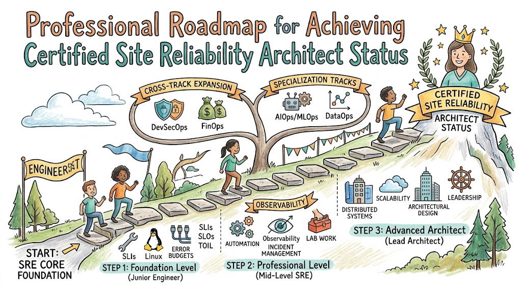 Professionals seeking to dominate the cloud infrastructure landscape will find the Certified Site Reliability Architect program an essential asset for their career toolkit. This comprehensive educational journey, offered by Sreschool, empowers engineers to design systems that maintain peak performance under extreme pressure. Rather than focusing on fleeting tool trends, this curriculum deepens your grasp of core architectural stability and operational efficiency. By following this guide, you will learn how to transform from a traditional operator into a high-level architect capable of steering complex digital transformations. Organizations worldwide now prioritize candidates who possess these specific skills, making this the perfect time to elevate your professional standing through targeted learning and validation.