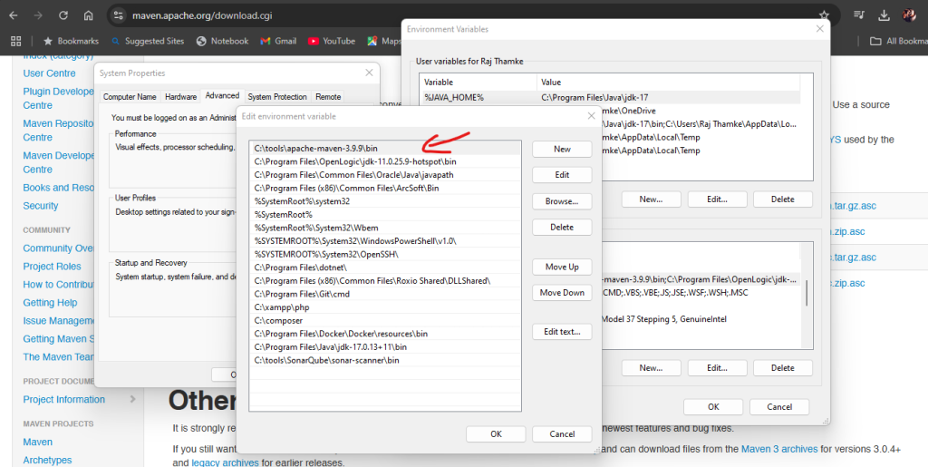 • If installed correctly, Maven’s version information will display, indicating it can locate Java and Maven.